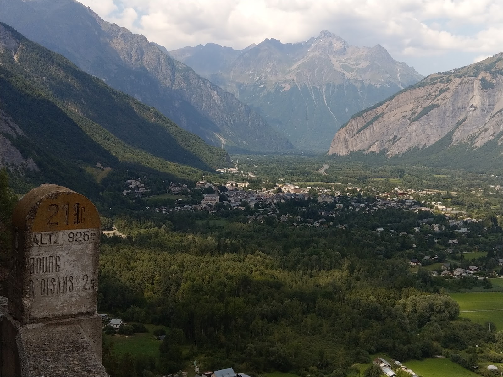 There are also good views to the end of the valley where the road to the Col du Lautaret and the Col du Galibier starts to head up. Le Velo Jaune is tucked away in the trees just below and to the right of the lake.